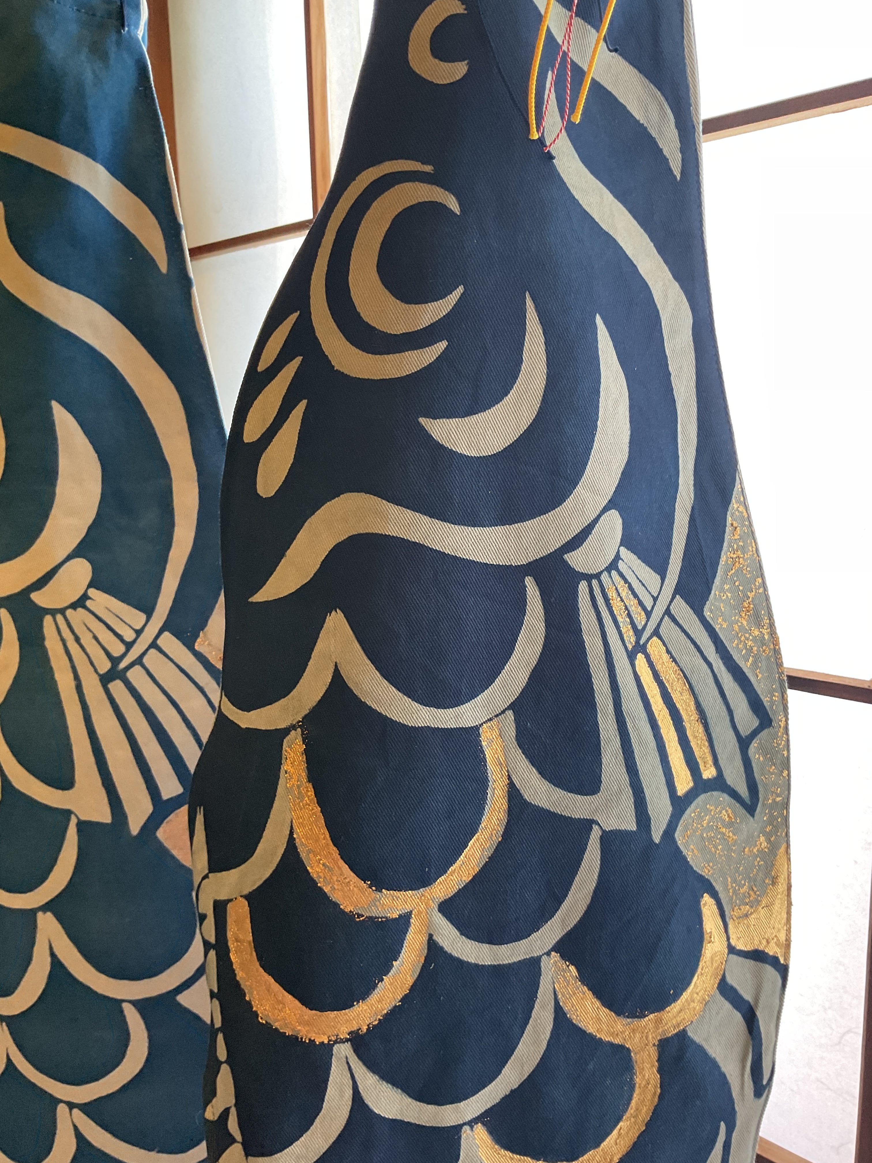 製作過程で生じた染めむらのある鯉のぼりに洋金箔を施し、新たな個性を持たせました。